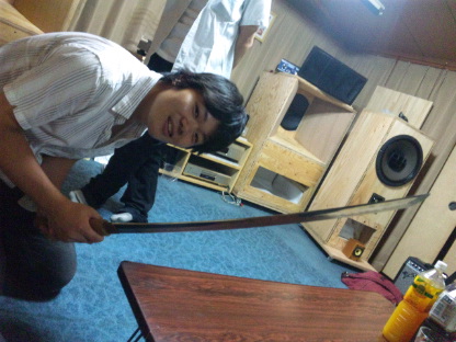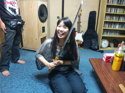 刀を握った、私とギターの西村。ふふっ、似合わんな~(笑)