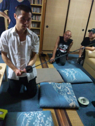 刀の説明と手入れをされている
