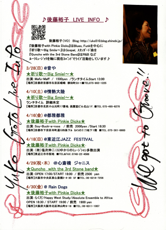 (From 後藤裕子with Pinkie Dicks)を迎えたライブがあります☆