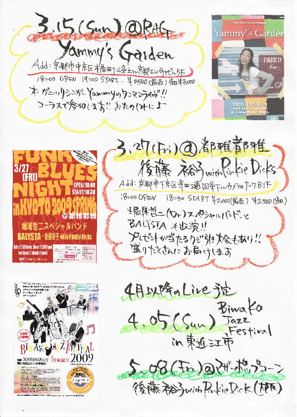 後藤裕子with Pinky Dicks,堀尾哲二スペシャルバンド,Balysta,