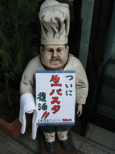 お店入り口の看板シェフも