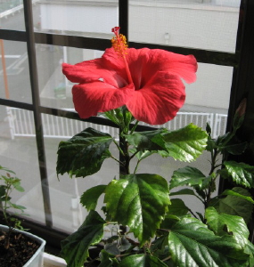 鮮やかに咲くハイビスカス見て、