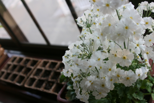 ガーデンメラコの奥に見える卵パックのような入れ物に蒔いてます